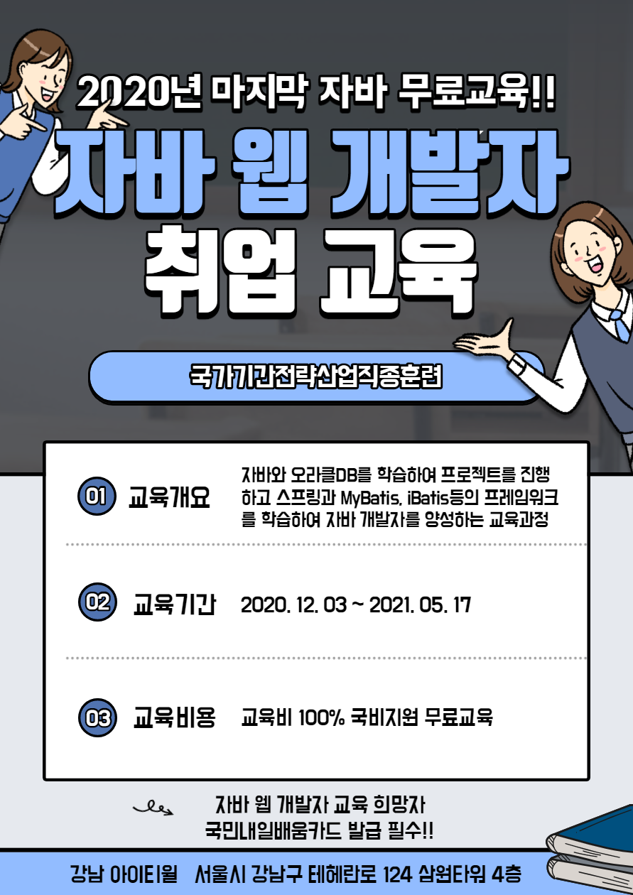 - 2020.11.04 아이티윌 자바 웹 개발자 취업교육! 2020년 마지막 자바무료교육이 시작된다!